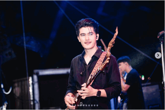 ธีร์—ในชุด ผ้าเตี่ยวสีขาวแบบเครื่องแต่งกายโอรสสวรรค์บนเวที