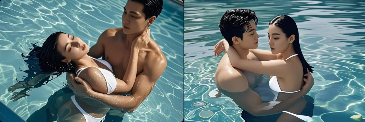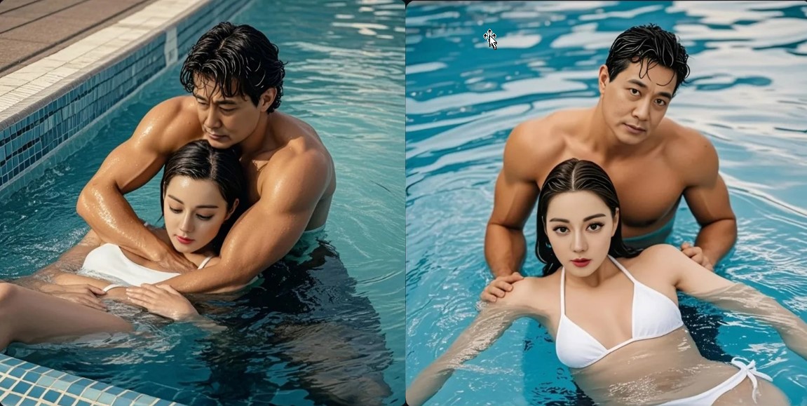 7. “ลุง...อย่า..ทำหนู...อย่า...” อิงฟ้ายิ่งขอร้องท่อนควยยิ่งถลำลึกเข้าไปในรูหีเธออย่างไร้ปราณี “โอ๊ววว.อ้า....หนูฟ้า...ของหนูมันคับแน่นจริงๆ....อ้า...สุดยอด...” ยิ่งเสียวยิ่งแน่นกริชยิ่งกดยิ่งดัน เขาดันช้าๆ สลับถอนออกน้อยๆ ทีละนิดจนที่สุดก็ถึงก้นบึ้งของรูสวาท ความเสียวแน่น ทำให้เด็กสาวยกขา 2 ข้างโอบรัดเอวกริชไว้เพื่อสกัดการเคลื่อนที่ของปลายหัวควย ตอนนี้เหมือนกริชอุ้มอิงฟ้าในท่า “ลิงอุ้มแตง” ในน้ำเด็กสาวถอนหายใจโล่งอกเพราะกริชหยุดชั่วขณะ แต่มันแปล๊บเดียว เขาก็เริ่มชักท่อนควยอันเขื่องออกมาเกือบสุดแล้วเสียบกลับยิ่งแรงกว่า ร่างงามสั่นสะท้านจากแรงกระแทกตัวโยน จากนั้นการสวนแทงก็เริ่มขึ้นทั้งลึกล้ำและรุนแรง มือ 2 ข้างกุมแก้มก้นที่อวบอั๋นยกร่างอรชรขึ้นและกดลงมากระแทกเร็วขึ้นแรงขึ้นลึกขึ้น ลื่นน้ำกระฉอกตามการกระเด้าเข้าออกของกริช เสียงน้ำ ระลอกคลื่นแผ่กระจายไปรอบเป็นวง
