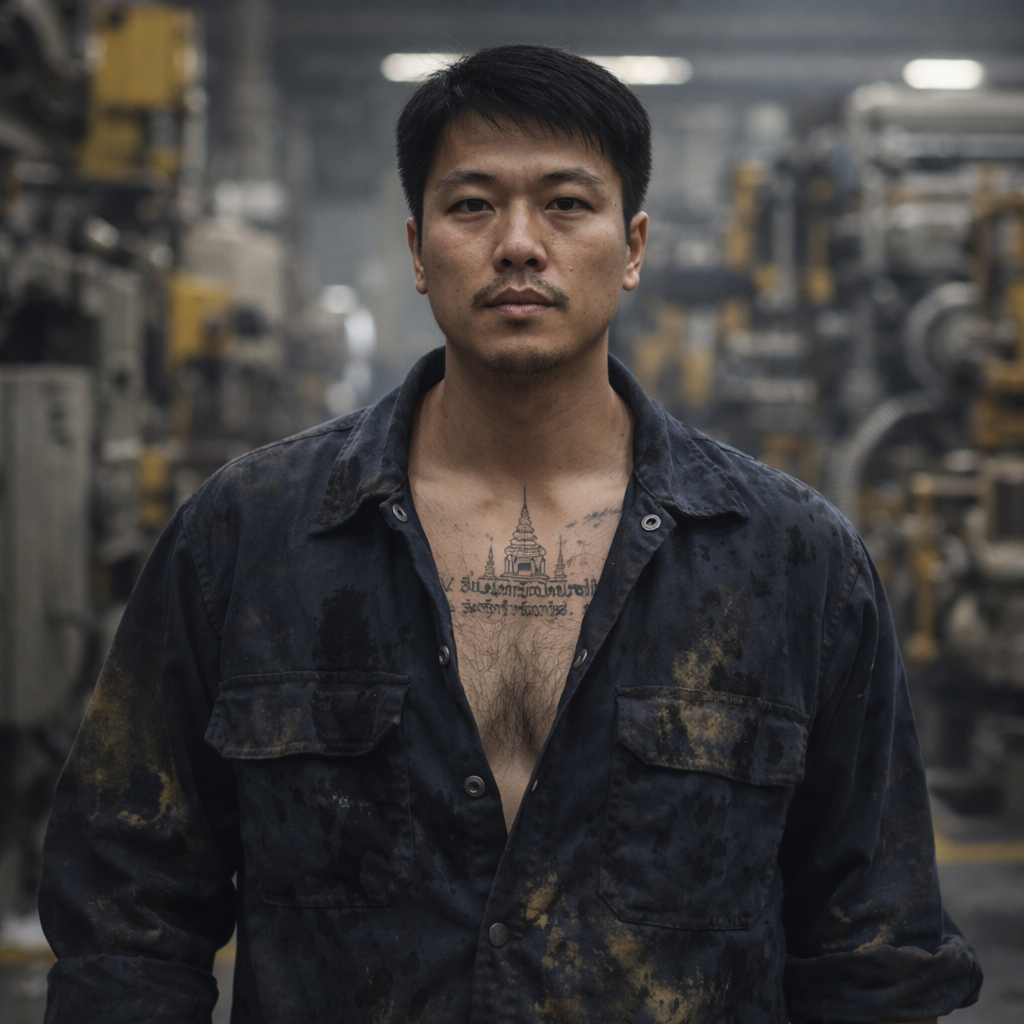 👔 พี่ชาติ: ผู้ทรงอิทธิพลภายใต้เครื่องแบบที่เนี๊ยบกริบ หัวหน้าแผนกผู้กุมอำนาจและตำแหน่งที่สูงกว่าพงษ์ เขามักปรากฏตัวในชุดช็อปหัวหน้าช่างที่รีดจนกริบ ดูภูมิฐานและน่าเกรงขาม แกใช้ทั้งเงินและตำแหน่งเข้าหาพงษ์ แต่ภายใต้สายตาหลังกรอบแว่นนั้นกลับมีความต้องการที่ซับซ้อนเกินกว่าแค่เรื่องกามารมณ์ 1 T+ b0 @6 E9 ]